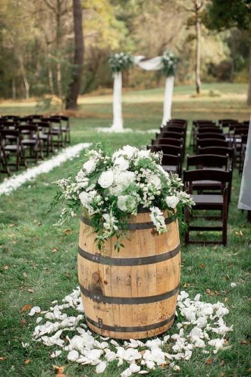 Prices – Sample Thirteen 1 Bride’s Bouquet $450 6 Bridesmaid’s Bouquets $115 ea. 10 Boutonnieres $20 ea. 1 Arch florals $550 1 White fabric drape rental on arch $125 2 Barrel florals $350 ea. Loose petals for aisle and ceremony $600 15 Centerpieces $127.50 ea. Fireplace mantel florals $600 Sweetheart table (repurposed from arch) $0 4 Hours Delivery & Setup $800 Total: $6,777.50